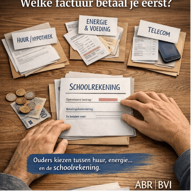 Wanneer meerdere kosten samenkomen – energie, medische facturen, huur en voeding – schuiven ouders noodgedwongen prioriteiten. Schoolfacturen verdwijnen dan vaak naar de achtergrond, niet uit onwil maar uit noodzaak.